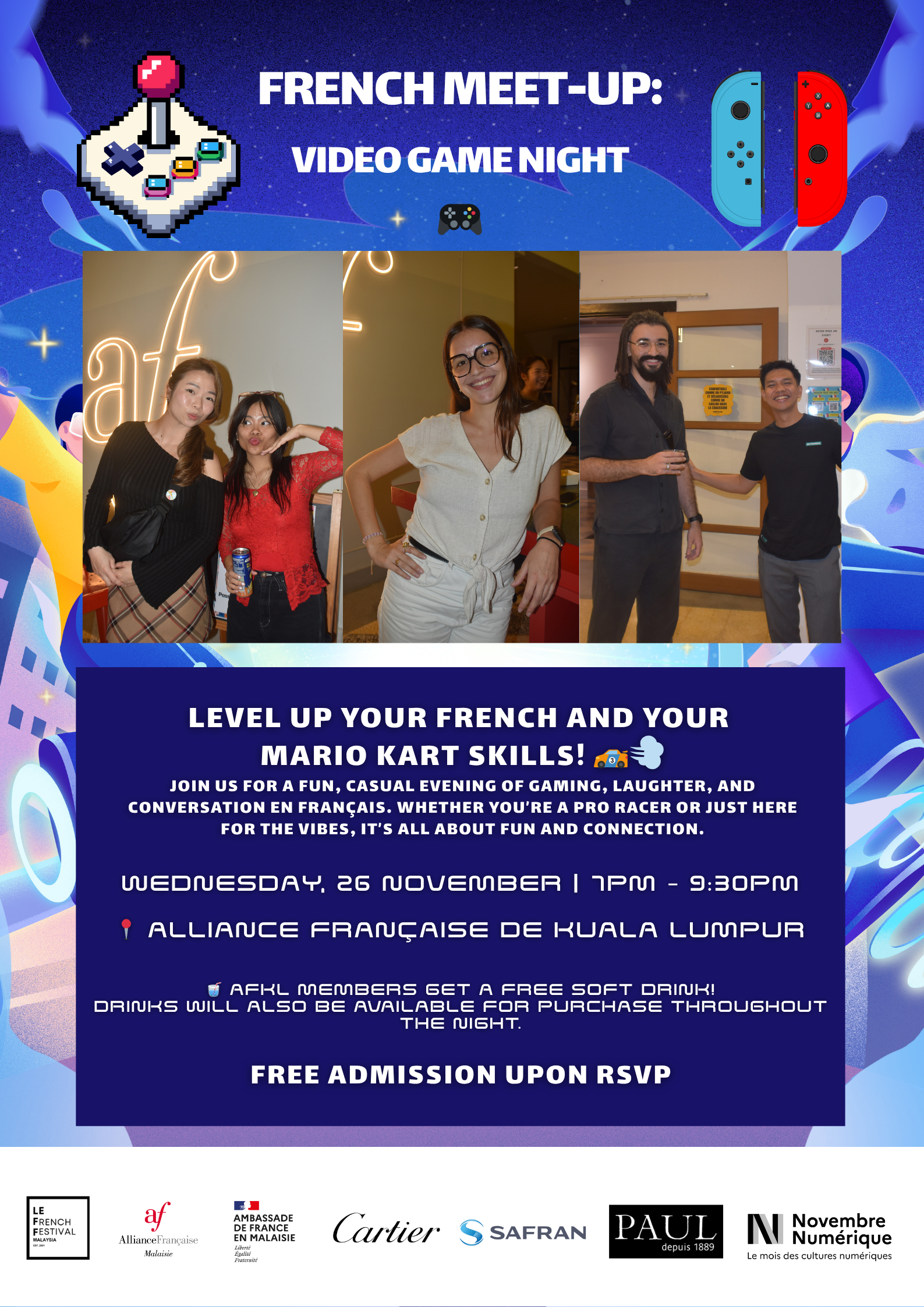 Join our French Meet Up for a fun-filled Video Game Night featuring Mario Kart! Practice your