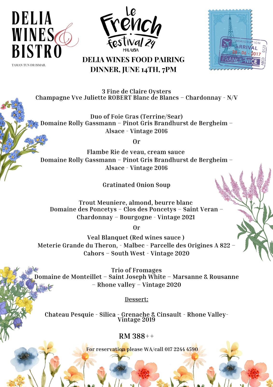 of authentic French cuisine paired with exquisite wines, designed to enchant your senses. Discover the specially crafted menu created