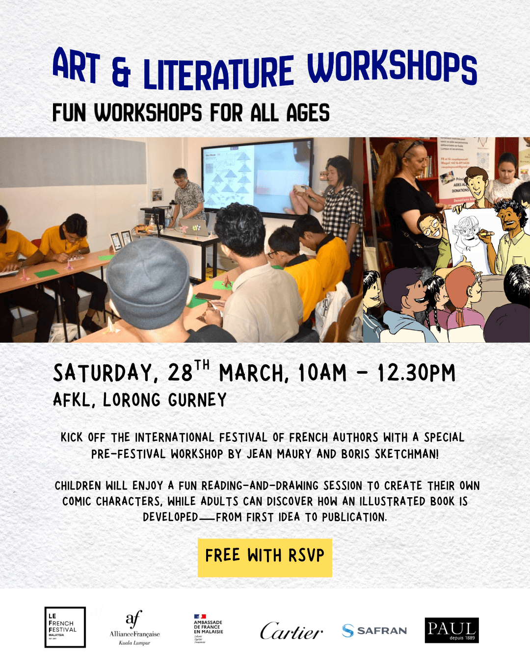 Led by Jean Maury, this playful and interactive workshop introduces young learners to the world of comic books. Using a comic album as a